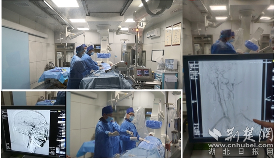 5月29日上午10時30許,該院卒中中心團隊在武漢中南醫(yī)院孫冬教授的指導(dǎo)下完成,術(shù)中經(jīng)股動脈穿刺,在導(dǎo)絲引導(dǎo)下行至主動脈弓造影,順利完成雙側(cè)頸動脈、雙側(cè)椎動脈造影。