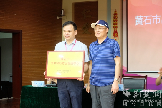 圖為省衛(wèi)健委二級調研員王勁松為黃石市婦幼保健院授予“黃石市出生缺陷防治管理中心”匾牌。 (通訊員供圖)