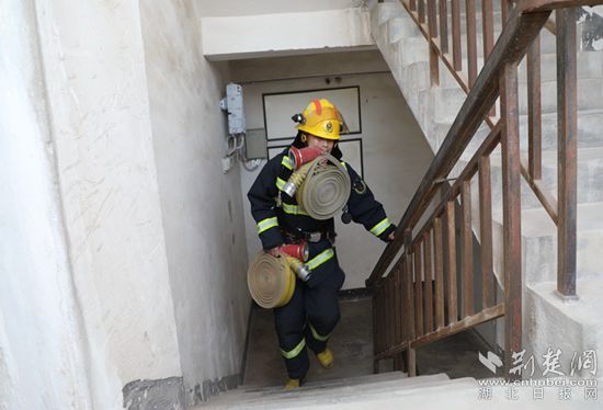 此次比武對(duì)抗賽分沿江、大別山、黃州三個(gè)片區(qū)舉行,來(lái)自支隊(duì)機(jī)關(guān)及基層14支代表隊(duì)的60名消防指戰(zhàn)員進(jìn)行5000米跑、一人三盤水帶連接、負(fù)重登十樓、100米接力跑等四個(gè)項(xiàng)目的大比拼。