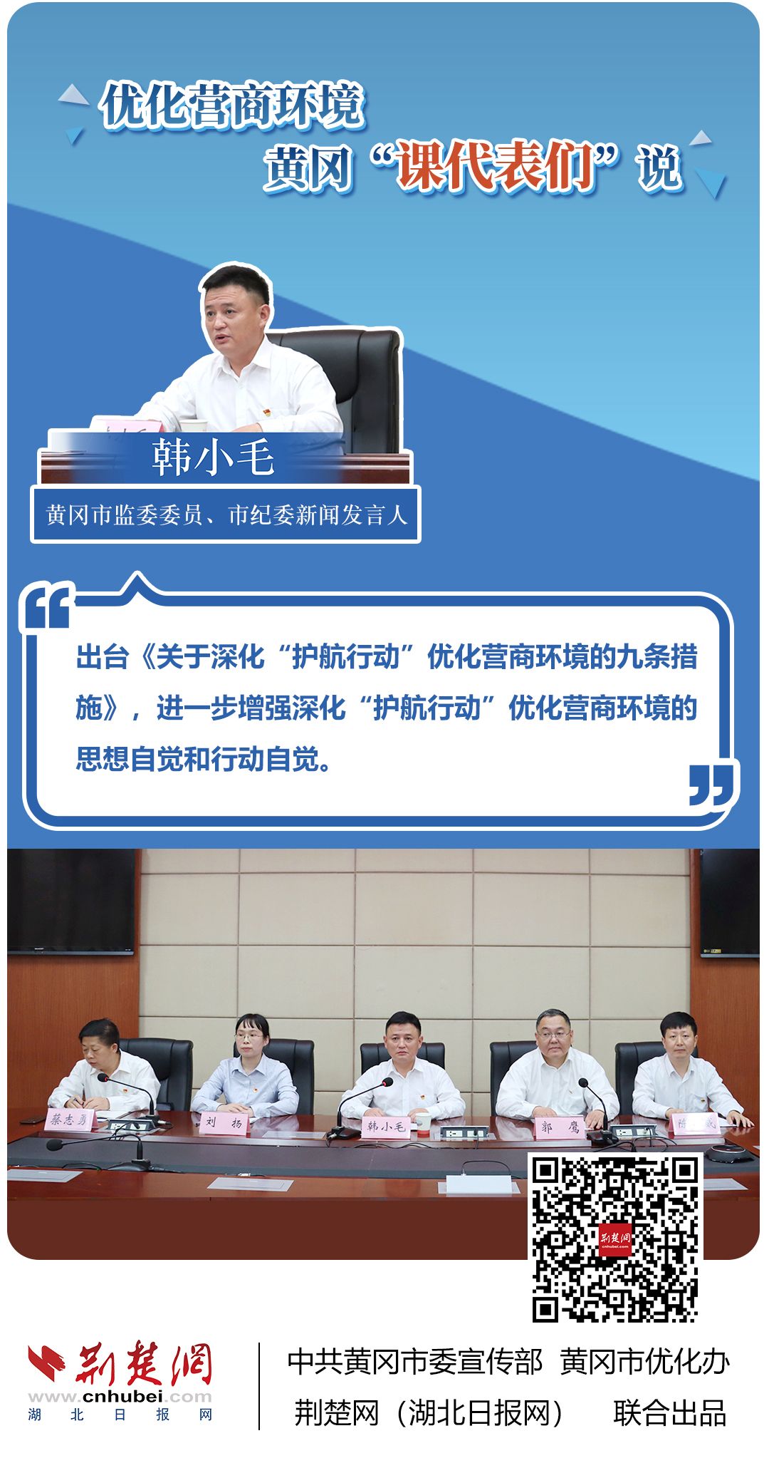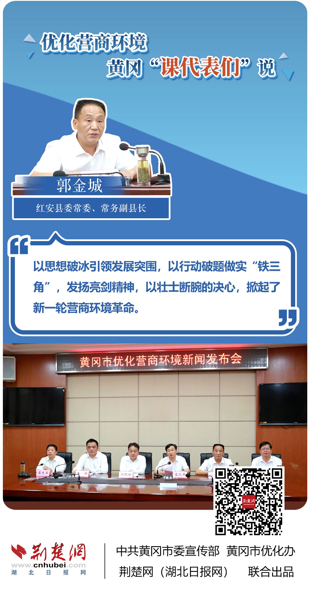 荊楚網(wǎng)(湖北日報網(wǎng))訊(記者胡小軍、劉璐、阮瓊、熊子璇 通訊員郭斯、阮浩文)聚焦簡政放權(quán)、再造審批流程、壓縮審批時限、降低經(jīng)營成本……??6月22日,黃岡市一天召開三場新聞發(fā)布會,市直機關(guān)、部分縣市等14名發(fā)言人全面介紹優(yōu)化營商環(huán)境有關(guān)情況。