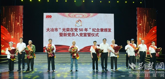 荊楚網(wǎng)(湖北日報網(wǎng))訊( 通訊員衛(wèi)學平)6月21日,大冶市舉行“光榮在黨50年”紀念章頒發(fā)儀式,向24名老黨員代表頒發(fā)“光榮在黨50年”紀念章,傳遞黨的關心和愛護。