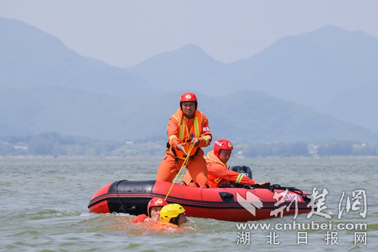 當(dāng)天上午10時許,黃石市消防救援支隊(duì)聯(lián)合眾邦大冶湖文旅公司、雄鷹救援隊(duì)進(jìn)行了一場抗洪搶險實(shí)戰(zhàn)演練。此次演練立足實(shí)際,貼近實(shí)戰(zhàn),累計(jì)調(diào)派消防指戰(zhàn)員及聯(lián)動單位參演人員80余人,救援舟艇14艘,水域救援裝備300余件套,設(shè)置了舟艇搜救、拋投器繩索救生、水面救生、舟艇翻覆自救、O型救援等八個救援科目。