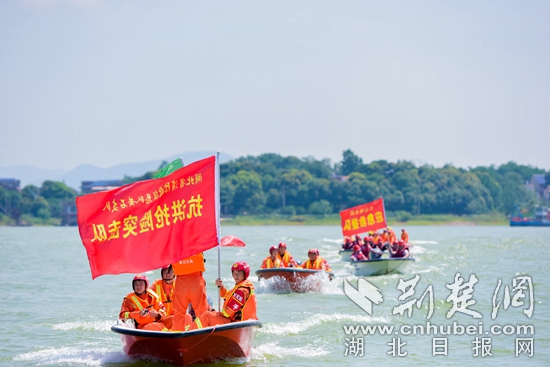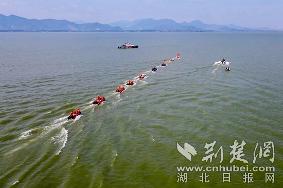 荊楚網(wǎng)(湖北日報網(wǎng))訊(通訊員張敏)6月24日,黃石開發(fā)區(qū)·鐵山區(qū)汪仁鎮(zhèn)黃荊頭村,一隊(duì)舟艇在大冶湖水面上乘風(fēng)破浪,先后排成一列橫隊(duì)、S形縱隊(duì)、環(huán)狀隊(duì)形的戰(zhàn)術(shù)隊(duì)形,場面壯觀,現(xiàn)場圍觀人群時不時爆發(fā)出陣陣喝彩。