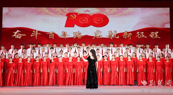 荊楚網(wǎng)(湖北日報網(wǎng))訊(記者胡小軍 通訊員余艷軍)奮斗百年路,啟航新征程。6月24日晚,黃岡師范學(xué)院體育運(yùn)動中心主場館內(nèi)燈火輝煌,由該校舉辦的慶祝中國共產(chǎn)黨成立100周年文藝晚會在此上演。近千名師生和教職工以豐富多彩的文藝節(jié)目向黨獻(xiàn)禮。