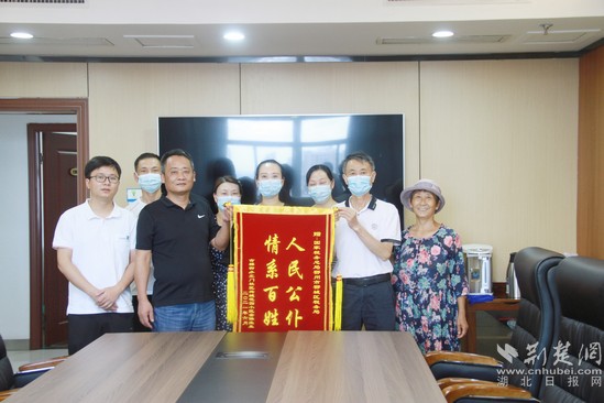 北門社區(qū)興城花園小區(qū)業(yè)主代表們向鄂州市鄂城區(qū)稅務(wù)局送來感謝錦旗。通訊員供圖