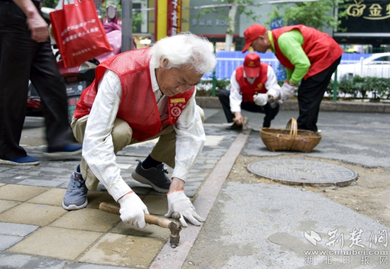 經(jīng)過觀察,他發(fā)現(xiàn)這是舊垃圾桶換新時(shí)遺留下來的“隱患”。“這樣看來,這螺釘肯定不止這一處?!彼胫谑亲9赓t每天一大早的遛彎變成了“螺釘攻堅(jiān)戰(zhàn)”。找到裸露的螺釘后,祝光賢組織幾名志愿者把鄂州市所有崗?fù)?、汽車站臺(tái)等處裸露的釘子錘平,十多天下來,他們錘了1000多顆釘子。