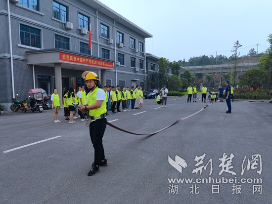 模擬室內消火栓處置初期火災培訓。通訊員 供圖