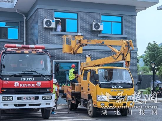 高空作業(yè)車模擬高空救援實操演練。通訊員 供圖