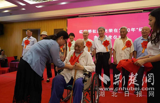 為老黨員代表頒發(fā)紀念章。通訊員 供圖