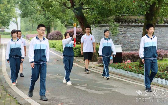 陳潭秋中學(xué)少先隊(duì)員們傳遞火炬。記者胡小軍 攝