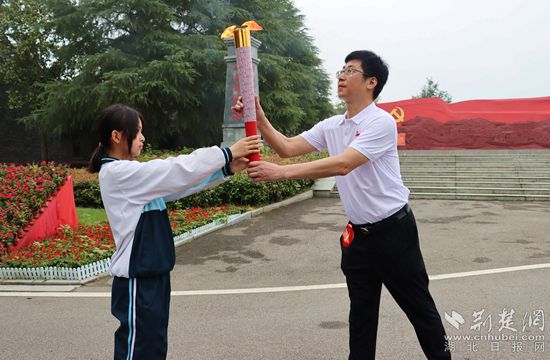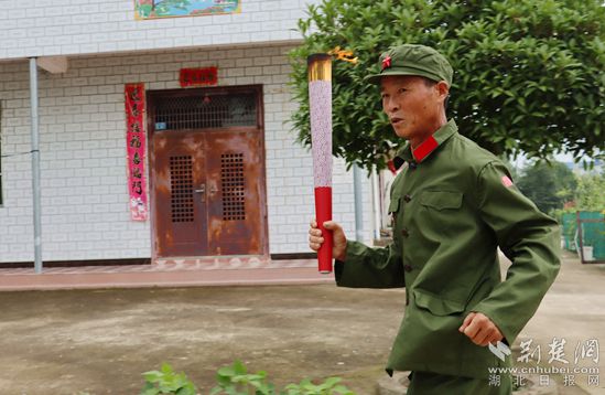 陳策樓鎮(zhèn)黨委書記楊平安在陳潭秋故居宣誓廣場接過火炬進(jìn)行傳遞。記者胡小軍 攝