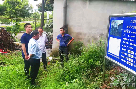 麻城市龍池橋街道紀(jì)工委干部到社區(qū)檢查地質(zhì)災(zāi)害點(diǎn),督促排查風(fēng)險(xiǎn)隱患。通訊員 供圖