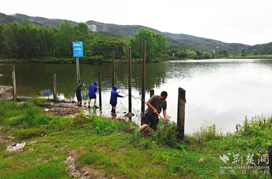 “溢洪道堵塞直接影響了水庫(kù)泄洪,必須馬上處理。”7月2日,乘馬崗鎮(zhèn)紀(jì)委在督查過(guò)程中,發(fā)現(xiàn)趙家垸水庫(kù)水位偏高,因漁網(wǎng)未及時(shí)清理導(dǎo)致溢洪道堵塞,存在安全隱患。