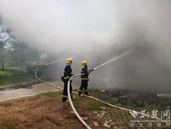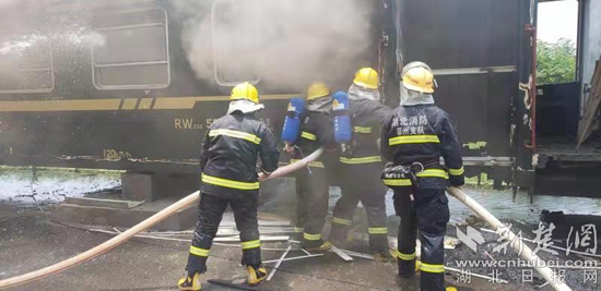 廢棄綠皮火車突然起火,鄂州消防緊急排除險(xiǎn)情。(通訊員供圖)