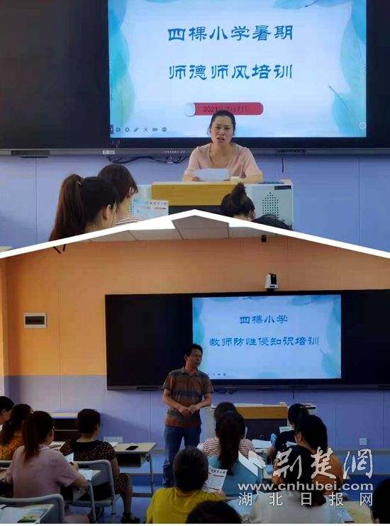 7月6日,四棵小學組織全體教師開展師德師風建設專項培訓活動。校長明正詠、副校長葉丹帶領全體老師深入學習了相關文件,重點強調了要遵守法律法規(guī)、依法執(zhí)教,認真貫徹黨和國家的教育方針,嚴格遵守《教師法》、《未成年人保護法》等國家法律法規(guī),扎實開展師德師風教育,辦人民滿意的教育。