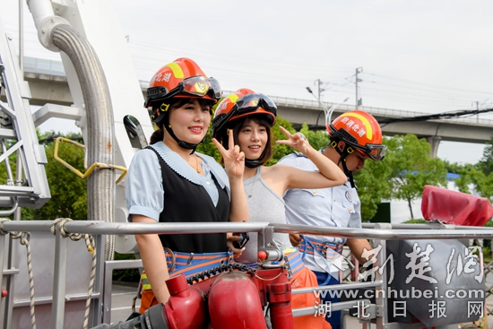 女嘉賓們體驗戴消防帽。通訊員 供圖