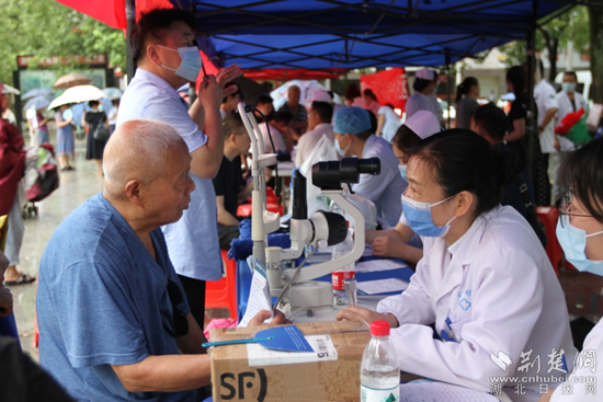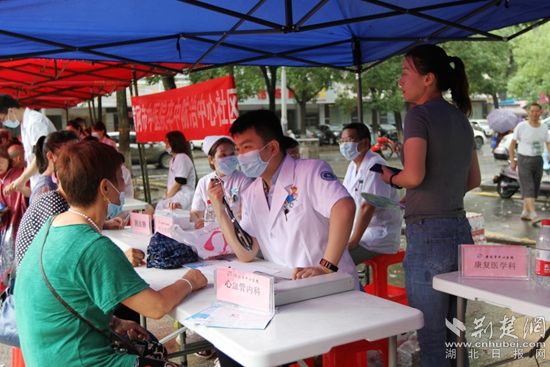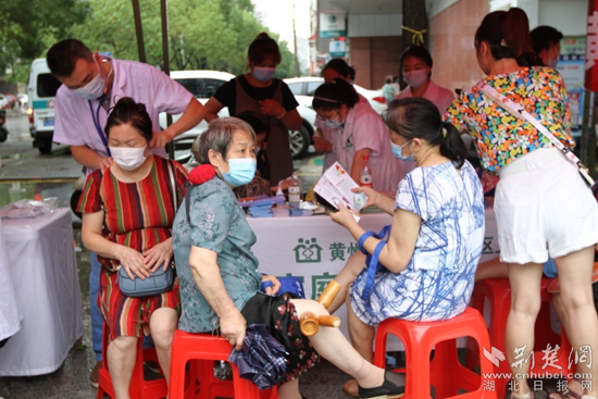 黃岡市中心醫(yī)院專家為群眾免費測量血壓、血糖,提供咨詢診斷、預防指導、康復訓練等健康管理服務。通訊員 供圖