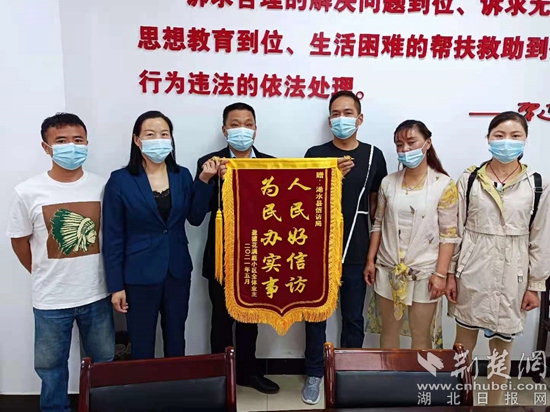 圖為浠水縣清泉盈德花滿(mǎn)庭小區(qū)代表到該縣信訪(fǎng)局送錦旗。(通訊員供圖)