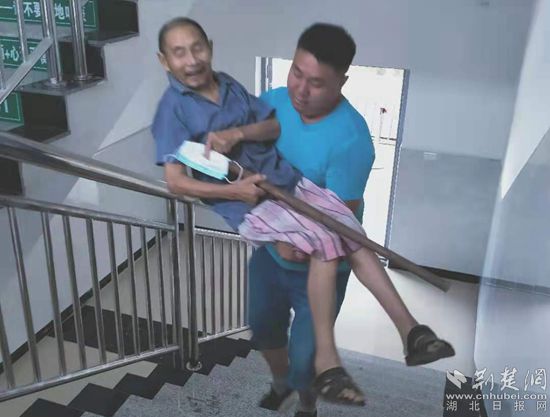 孔家坊鄉(xiāng)村干部抱起老人上樓接種疫苗。通訊員 供圖
