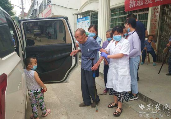 此前,該縣縣、鄉(xiāng)、村干部進(jìn)村入戶宣傳疫苗接種最新政策,黃博文主動(dòng)詢問(wèn)能否接種。村干部駕車將老人及其家屬接至鄉(xiāng)衛(wèi)生院,考慮到老人百歲高齡,為保證接種安全,醫(yī)務(wù)人員詳細(xì)詢問(wèn)老人既往病史和近期健康狀況,并為老人測(cè)量血壓,細(xì)心叮囑疫苗接種注意事項(xiàng)。后經(jīng)縣人民醫(yī)院專家組綜合研判,決定給老人接種,于是出現(xiàn)上述一幕。