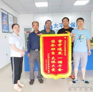 中國太平洋財產保險股份有限公司黃梅支公司工作人員先后五次到達現場查勘、復勘、定損,并迅速將19.8萬元設施農業(yè)保險賠付到位。為感謝該公司的高效服務,石鐵祥代表石畈朋豐農民種養(yǎng)專業(yè)合作社給該公司送來錦旗表示感謝。