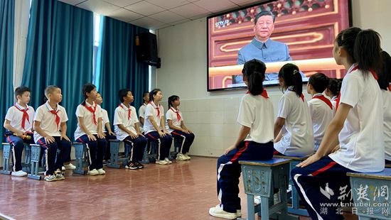 “在中國共產(chǎn)黨成立100周年這個(gè)特殊的時(shí)間結(jié)點(diǎn),我們深入農(nóng)村,采取線上線下形式,面向留守兒童等群體宣講習(xí)近平總書記‘七一’重要講話精神,目的在于引導(dǎo)少年兒童從血與火的革命歷史,傳承紅色基因、傳遞革命薪火?!秉S岡師范學(xué)院學(xué)生代表汪童說。