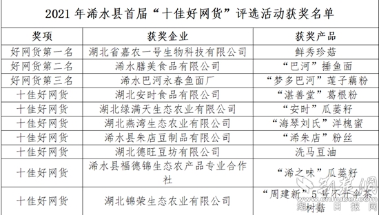 2021年浠水縣首屆“十佳好網(wǎng)貨”評選活動獲獎名單。通訊員供圖