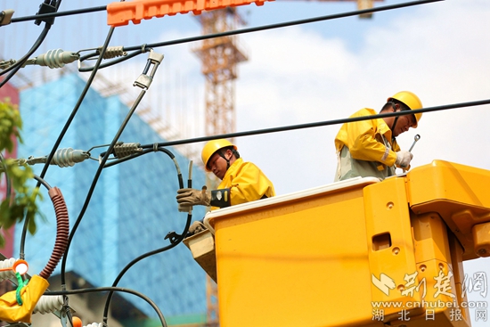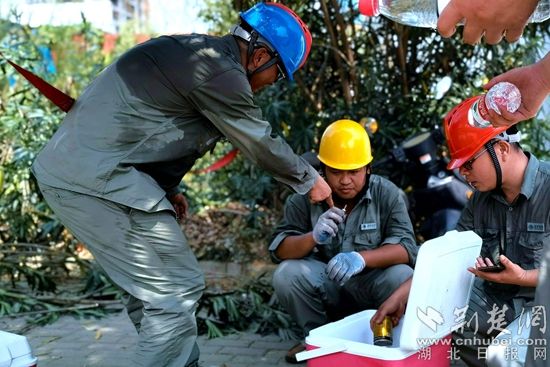 荊楚網(wǎng)(湖北日?qǐng)?bào)網(wǎng))訊(通訊員姜志剛、鄭瑤)“趕緊喝點(diǎn)霍香正氣水,吃點(diǎn)仁丹,把身上汗透的衣服脫下來(lái)在蔭涼的地方晾一下……”8月2日下午2點(diǎn),在葛店開(kāi)發(fā)區(qū)張汽一回線出線搶修現(xiàn)場(chǎng),國(guó)網(wǎng)鄂州市華容區(qū)供電公司帶電作業(yè)人員蘇杭剛從帶電作業(yè)車(chē)上下來(lái),地面作業(yè)人員趕緊送來(lái)降暑藥。這已經(jīng)是他今天第三輪從帶電作業(yè)車(chē)上下來(lái)了。