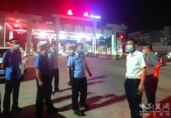 麻城市紀(jì)委監(jiān)委主要負(fù)責(zé)人在高速出入口檢查疫情防控。通訊員 供圖