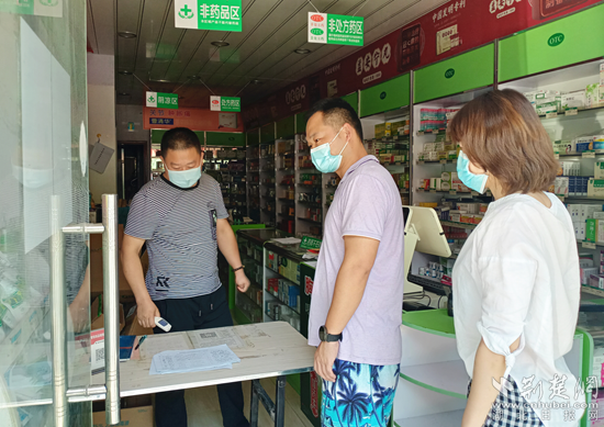 監(jiān)督檢查專(zhuān)班檢查藥店等場(chǎng)所疫情防控措施落實(shí)情況。通訊員 供圖