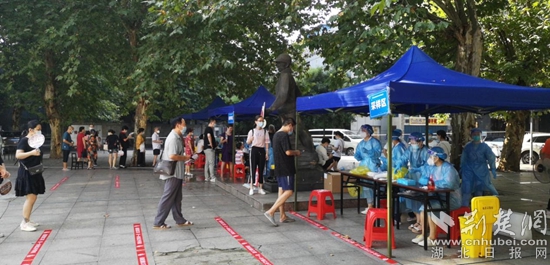 荊楚網(wǎng)(湖北日報(bào)網(wǎng))訊(通訊員何新民 柯銘錕)為做好疫情防控工作,8月8日,黃石市住建局下沉文化宮社區(qū)黨員干部、志愿服務(wù)隊(duì)員們在市工人文化宮雕像廣場(弘康中醫(yī)醫(yī)院門前)開展社區(qū)全域全員(免費(fèi))核酸檢測。