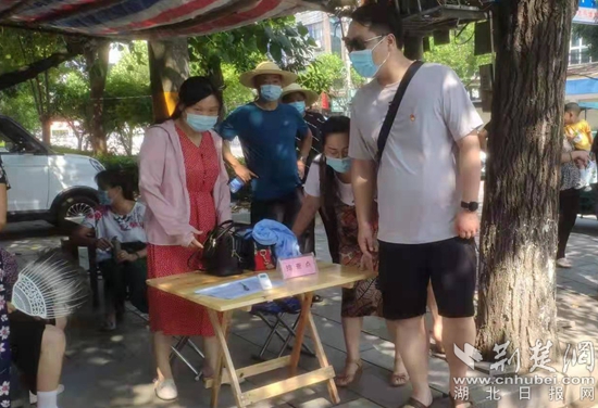 荊楚網(wǎng)(湖北日報(bào)網(wǎng))訊(通訊員 陸登鋒 吳佳靈)“同志,請帶好口罩。”“請出示您的健康碼。”8月8日13時(shí),烈日當(dāng)空,在地表溫度為40℃以上的武穴市西菜園社區(qū)勇城國際卡點(diǎn),武穴市實(shí)驗(yàn)中學(xué)教師樊麗霞正在認(rèn)真地檢查每位進(jìn)出小區(qū)的居民。趁著中午人流少,樊麗霞點(diǎn)了一份外賣:“學(xué)校安排我參加卡點(diǎn)職守是對我的信任,使命光榮,馬虎不得!”
