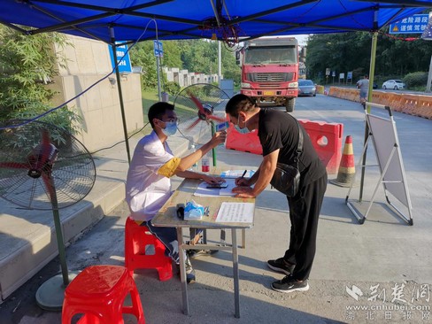 荊楚網(wǎng)(湖北日?qǐng)?bào)網(wǎng))訊(通訊員 艾曉楓)筆者8月10日獲悉,連日來,鄂州市碧石渡鎮(zhèn)于106國(guó)道鄂州市、黃石市交界處設(shè)置疫情防控監(jiān)測(cè)卡點(diǎn),由該鎮(zhèn)黨委班子成員帶隊(duì),政府機(jī)關(guān)、村鎮(zhèn)社會(huì)服務(wù)中心、環(huán)保站干部、交警三中隊(duì)交警、派出所民警、中心學(xué)校教師、村青年志愿者等共30人分早中晚三班值班值守,24小時(shí)不間斷運(yùn)轉(zhuǎn),逐一摸排進(jìn)入鄂州車輛人員信息。