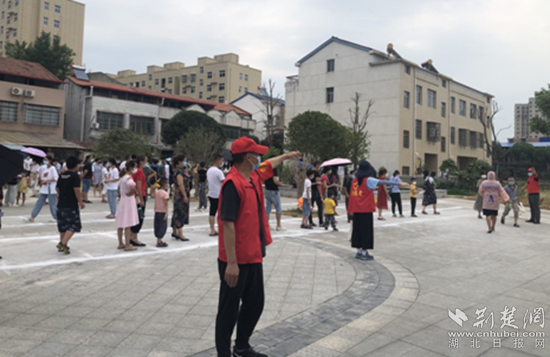 團風煙草黨員指導檢測居民有序進行采集。通訊員 供圖