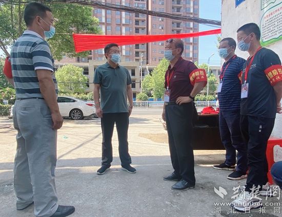 十月社區(qū)和窯湖片區(qū)大黨委第一書記高橋忠(左二)到片區(qū)卡口督導(dǎo)檢查疫情防控工作。通訊員供圖