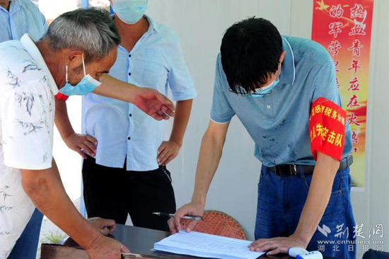 在基層生產(chǎn)隊(duì),來(lái)自稅務(wù)部門(mén)的黨員突擊隊(duì)正在逐戶(hù)排查中高風(fēng)險(xiǎn)地區(qū)重點(diǎn)人口。通訊員 供圖