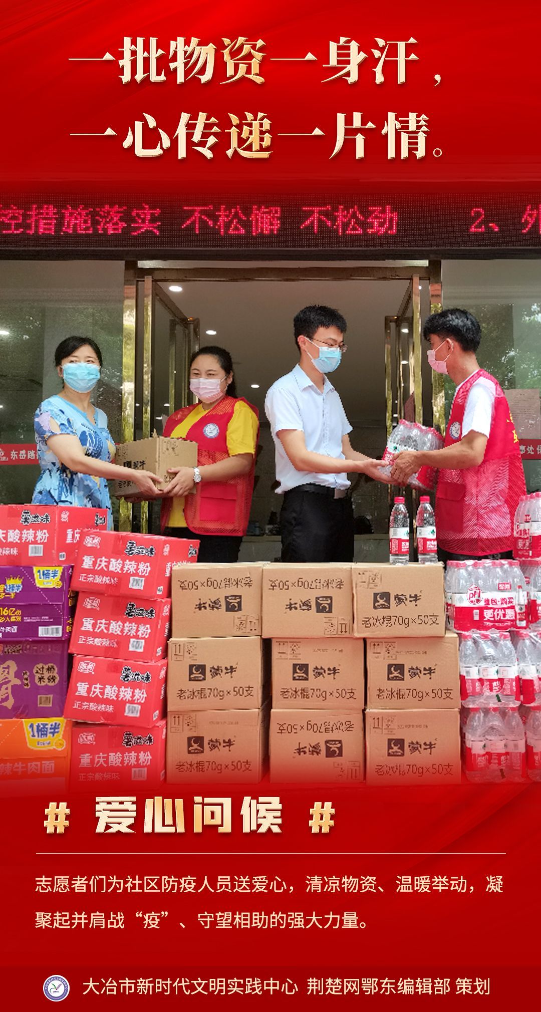 荊楚網(wǎng)(湖北日?qǐng)?bào)網(wǎng))訊(記者呂鑒蕾 劉璐 通訊員 姚昭 陳雯君 毛卉)群眾的需求在哪里,文明實(shí)踐就延伸到哪里。一幕幕“有愛(ài)”的瞬間,匯聚成大冶“志愿紅”的抗疫擔(dān)當(dāng)。