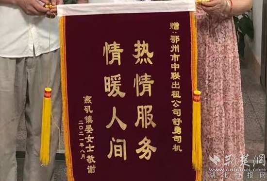 荊楚網(wǎng)(湖北日?qǐng)?bào)網(wǎng))訊(通訊員熊向華、周啟江)8月13日上午,家住鄂州市臨空經(jīng)濟(jì)區(qū)燕礬鎮(zhèn)的晏女士帶著孫女將一面寫有“熱情服務(wù),情暖人間”的錦旗送到市中聯(lián)汽車出租有限公司,以此來(lái)表達(dá)對(duì)鄂GT610出租車駕駛員舒勇助人為樂(lè)的真誠(chéng)謝意。