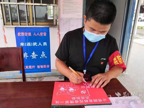 用一支筆宣傳武穴抗疫正能量。通訊員供圖