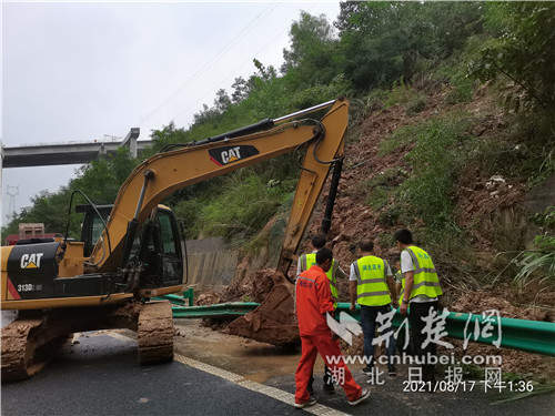 險情發(fā)生后,湖北交投鄂西北高速公路運營管理有限公司第四綜合巡檢辦立即啟動搶險應(yīng)急預(yù)案,經(jīng)過與轄區(qū)高警、路政協(xié)商確定后,將原本因跨線橋施工封閉的行車道改為封閉超車道,確??焖偾謇砺访嫔呈陀倌?。該公司第四綜合巡檢辦迅速抽調(diào)10名人員組成搶險突擊隊,攜帶2臺挖掘機、2臺運輸車和相關(guān)搶險設(shè)備,緊急上路擺放安全警示標志和勘察險情、確定搶險方案等工作。經(jīng)過全員的共同努力,共清除塌方270立方米,道路及時恢復(fù)了正常通行。