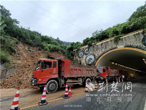 荊楚網(wǎng)(湖北日報網(wǎng))訊(通訊員:金偉忠、宮正、張杰)8月16日至17日,強降雨天氣一直籠罩在湖北十堰市主城區(qū)以及鄖陽、經(jīng)開區(qū)等局部區(qū)域上空,導(dǎo)致G59呼北高速公路鄖十路段出現(xiàn)不同程度的邊坡垮塌、路面沖毀險情。其中,損毀較為嚴重的為方家洼隧道出口處山體滑坡,大量泥沙、土石被沖刷至路沿排水溝及應(yīng)急車道,洶涌水流傾斜而下,誘發(fā)了高邊坡坡頂多處泥土松動、坡面土石不穩(wěn)定,隨時有滑落到車道的可能,嚴重威脅道路行車安全。
