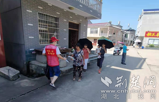 工作人員勸導(dǎo)村民出門(mén)戴口罩。通訊員 供圖