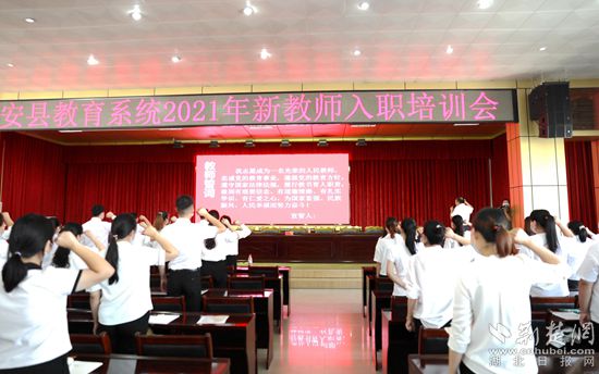 荊楚網(wǎng)(湖北日報網(wǎng))訊(通訊員 劉先瑩 ) 8月21日上午,紅安二中多功能報告廳內(nèi)座無虛席,紅安縣教育系統(tǒng)2021年新教師入職培訓(xùn)活動在此舉行,168名新入職教師在教育局長曾紅波的領(lǐng)誓下舉起右手鄭重宣誓。