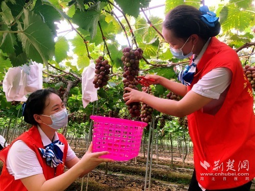 在陽新縣大王鎮(zhèn),凌宸葡萄園的種植戶王果農(nóng)也面臨同樣的問題。武黃運營公司大王收費站青年志愿者得知情況后,拿著剪刀,提著小籃子組隊“出戰(zhàn)”,志愿者們利用網(wǎng)絡(luò)直播平臺,現(xiàn)場進行“助農(nóng)增收”直播,當(dāng)天幫果農(nóng)賣出葡萄200多斤,切實解決了王果農(nóng)葡萄滯銷問題。