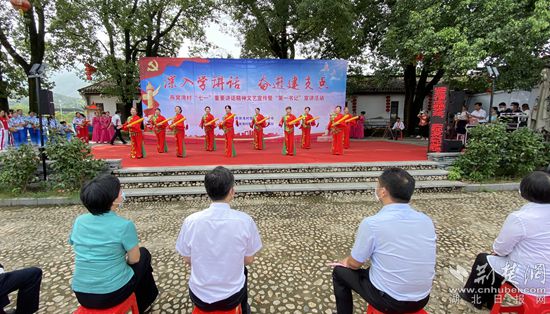 荊楚網(wǎng)(湖北日報網(wǎng))訊(通訊員 柳一村 劉世民)“你看那產(chǎn)業(yè)扶貧,貼息能貸款,教育助學(xué),能把學(xué)上完,大病救助扶持,減輕你負(fù)擔(dān),易地搬遷,幫你脫貧,再也不困難?!?月25日,在黃岡市羅田縣駱駝坳鎮(zhèn)燕兒谷茶梅小鎮(zhèn),村民們用豐富多樣的文藝表演宣講“七一”重要講話精神。