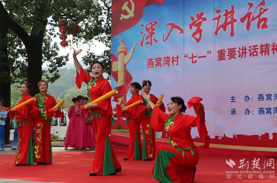 燕窩灣村村民自導(dǎo)自演文藝節(jié)目宣講“七一”重要講話精神。通訊員 供圖