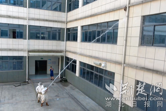 經(jīng)消防指揮員再次對現(xiàn)場勘察,在反復(fù)確認現(xiàn)場無人后,兩名消防隊員身著防蜂服,先鋪設(shè)水槍陣地,用高壓水流將高處馬蜂窩擊落,再手拿殺蟲劑,對擊落的馬蜂窩殘骸進行“火攻”。經(jīng)過一刻鐘的“水火夾擊”,消防員成功將尹家湖小學(xué)的馬蜂窩安全處置并掩埋,為師生們及時排除了馬蜂傷人的安全隱患。
