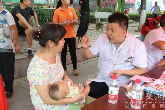 黃石市四醫(yī)院兒科主任盧良軍為患者免費(fèi)義診。通訊員供圖