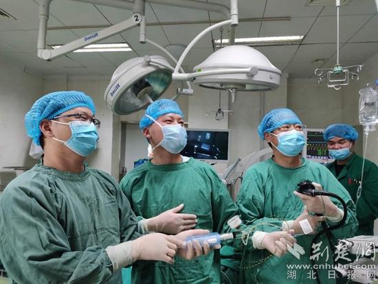 黃石十大名醫(yī)、市級重點(diǎn)??聘文懲饪浦魅瓮醣ㄓ叶┲笇?dǎo)年輕醫(yī)生做手術(shù)。通訊員供圖