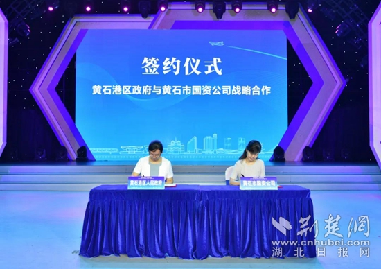 黃石港區(qū)政府與黃石市國資公司簽訂戰(zhàn)略合作。汪澤棟 攝